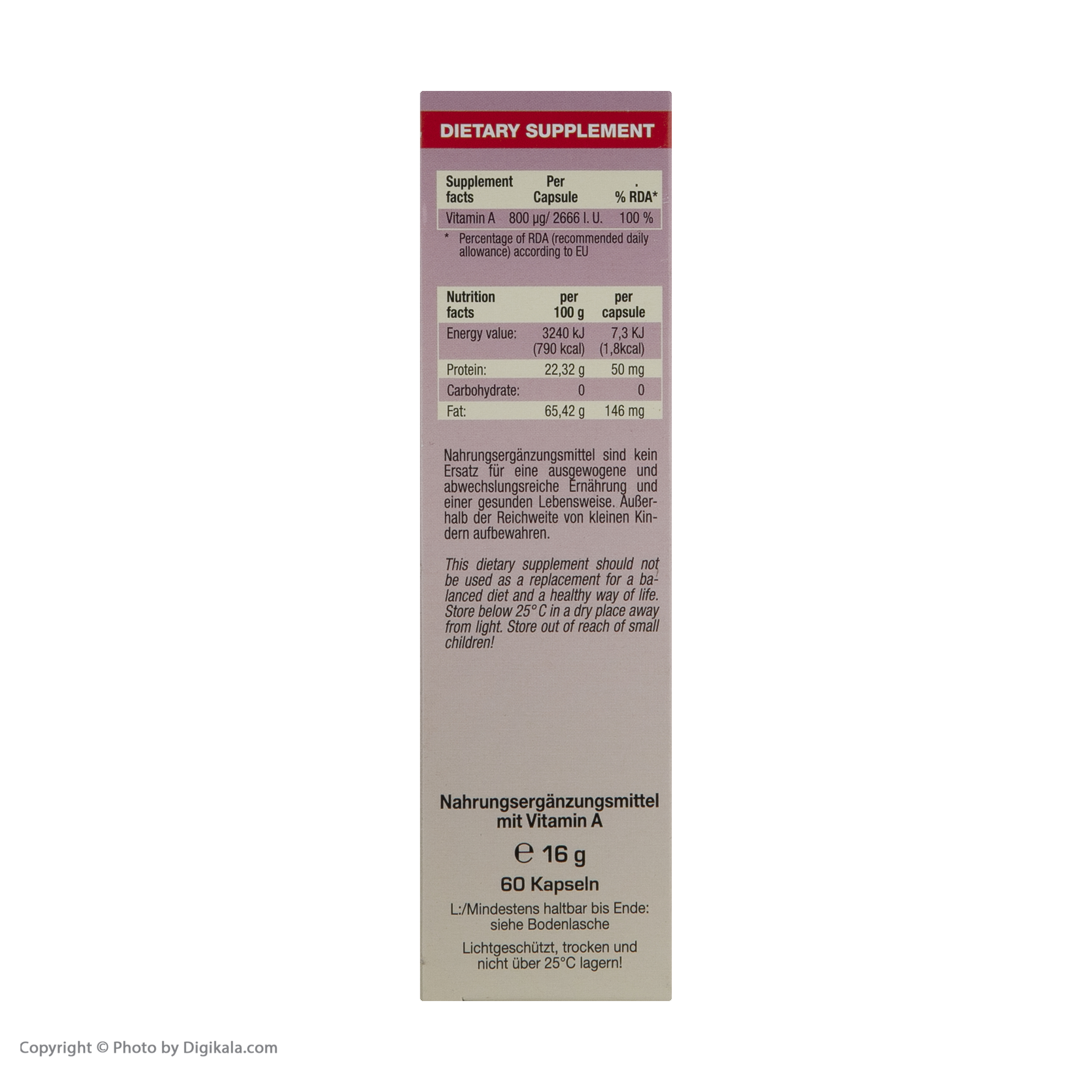کپسول ویتامین آ یوروویتال بسته 60 عددی