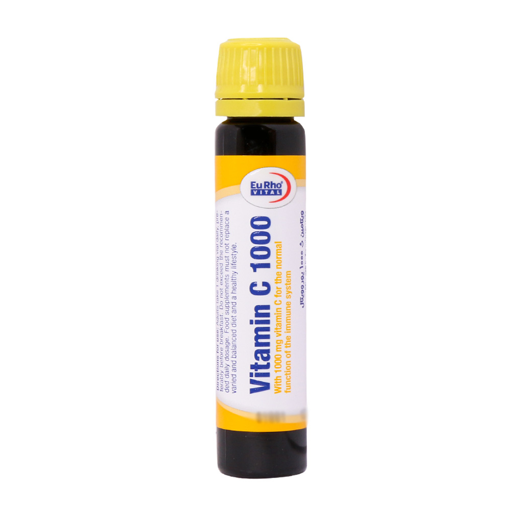 این ویتامین یکی از مهمترین آنتیاکسیدانها است که از بدن در برابر آسیب رادیکالهای آزاد (ناشی از افزایش سن، بیماریها، متابولیسم بدن و آلودگیهای محیطی) محافظت میکند. تولید رادیکالهای آزاد با گذشت زمان از دلایل اصلی بروز فرایند پیری بوده و میتواند باعث بروز بیماریهایی همچون سرطان، بیماریهای قلبی، دیابت و غیره شود. دریافت ترکیبات آنتی اکسیدانی با این روند مقابله میکند.ویال خوراکی ویتامین C یوروویتال حاوی 1000 میلیگرم ویتامین C است که باعث تقویت سیستم ایمنی و حفظ سلامت عمومی بدن میشود.