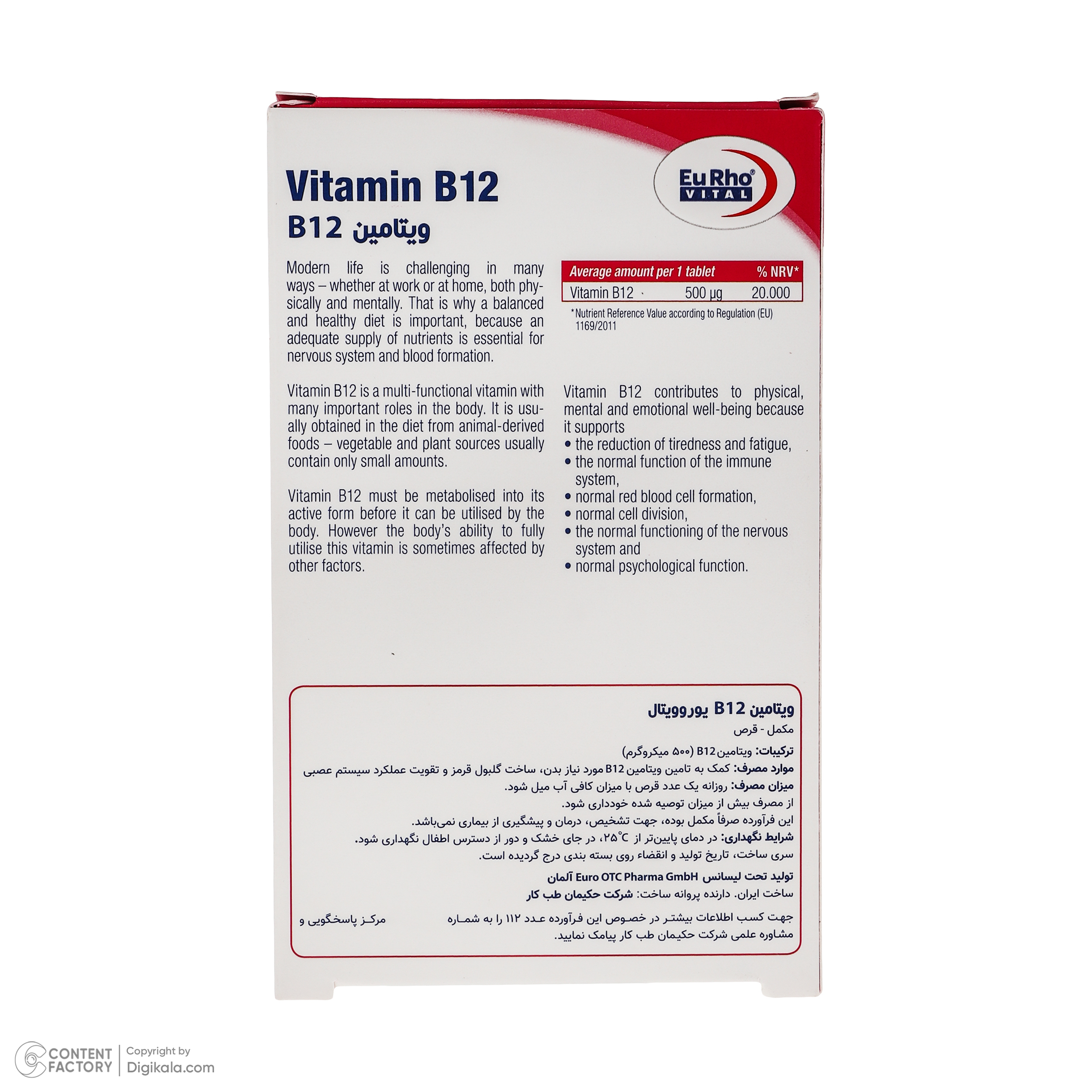 قرص ویتامین ب 12 500 میکروگرم یوروویتال دو بسته 60 عددی