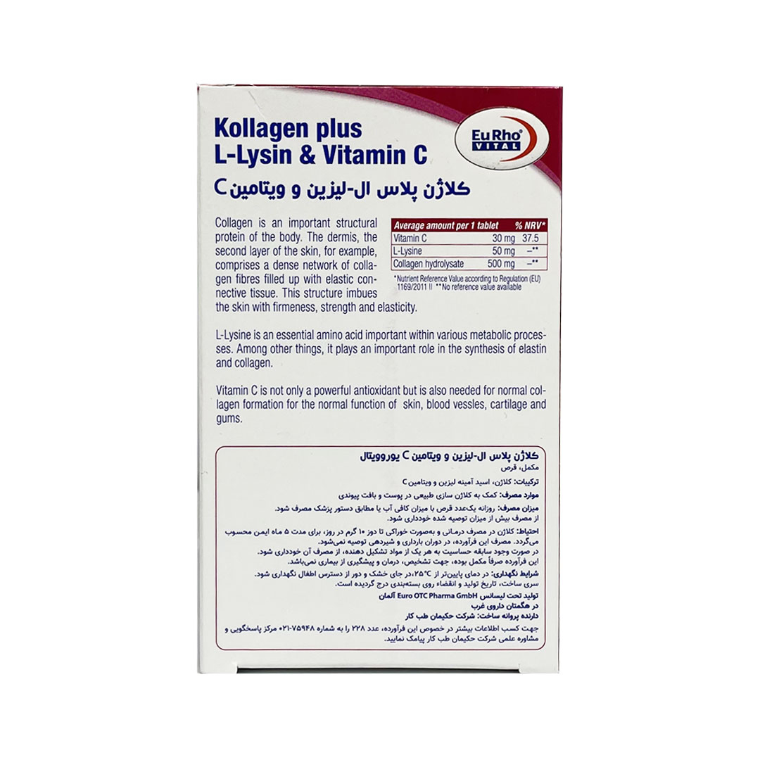 کلاژن یکی از پروتئینهای مهم ساختار پوست است که استحکام و ارتجاع پذیری را افزایش میدهد. سلولهای پوستی به کمک این پروتئین، جایگزین سلولهای قبلی میشوند و به همین سبب پوست جوان میماند. با این وجود عواملی مانند داشتن رژیمهای غذایی نادرست، آلودگی هوا، اشعه ماورابنفش، افزایش سن، استعمال دخانیات، عوامل ژنتیکی و ابتلا به بیماریهای خود ایمنی مانند لوپوس سبب کاهش تولید کلاژن در پوست میشوند. به همین سبب خوردن مکملهای کلاژنساز برای سلامت پوست و جوان ماندن آن الزامی است. قرص کلاژن پلاس ال لیزین و ویتامین ث یوروویتال مغذی پوست است و موجب جلوگیری از پیری پوست و چروک صورت می شود. قرص کلاژن پلاس ال لیزین و ویتامین C یوروویتال موجب تقویت پوست، تقویت عضلات و غضروف ها، افزایش استحکام و الاستیته پوست می شود. این محصول به صورت 60 عددی عرضه میشود و روزی یک عدد از آن را میتوانید همراه با آب میل نمایید.